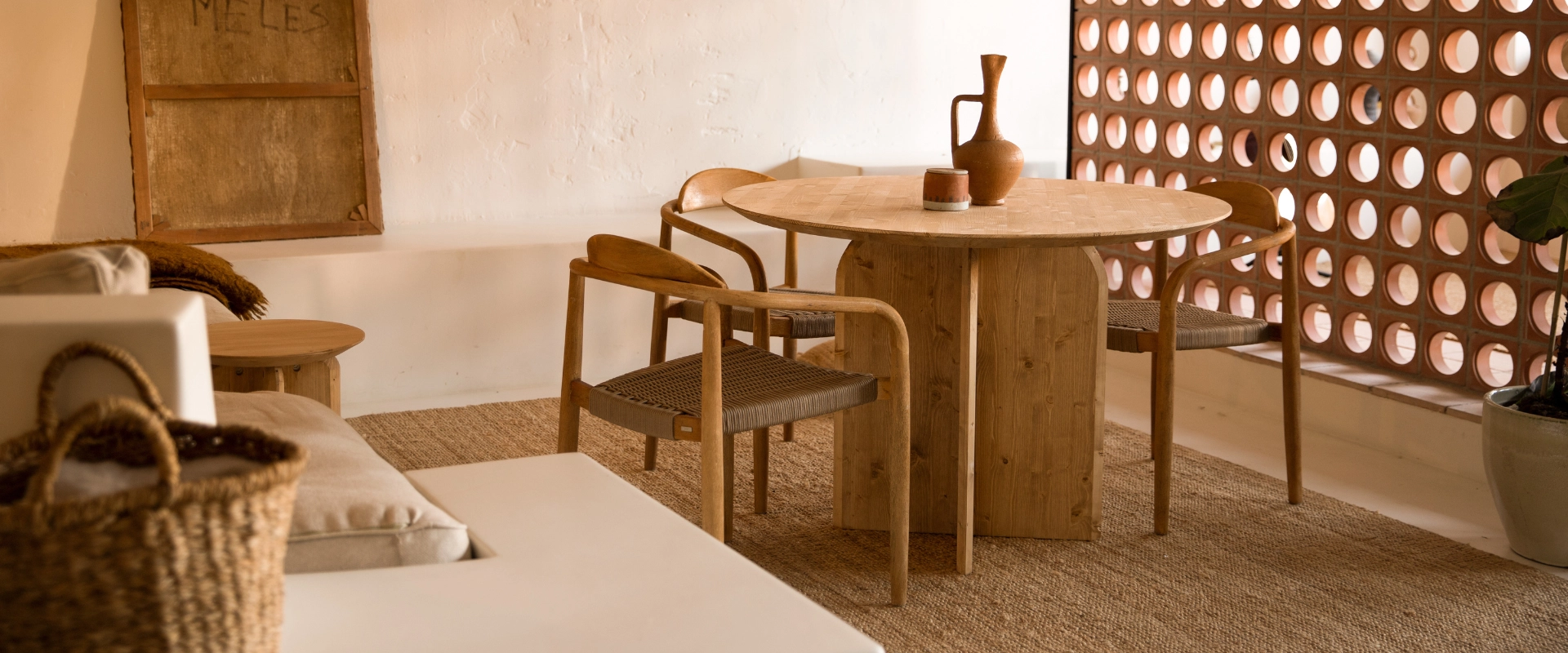 With the Bloom collection, you will achieve a bohemian touch in your home. Ideal for lovers of natural style. Classic, cozy, with hints of modernity. The pieces in this collection are handmade with sustainable natural wood.